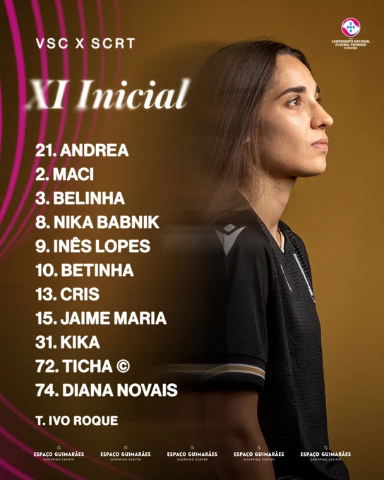 | 11 INICIAL - LINE UP As escolhidas por Ivo Roque para o jogo de hoje! Ins Marques, Monteiro, Nn, Leti, Isa, Laura Pires, Maria Ribeiro, Maria Salgado, Bia #EspritoDeVitria #FutebolFemininoVSC#VSCSCRT